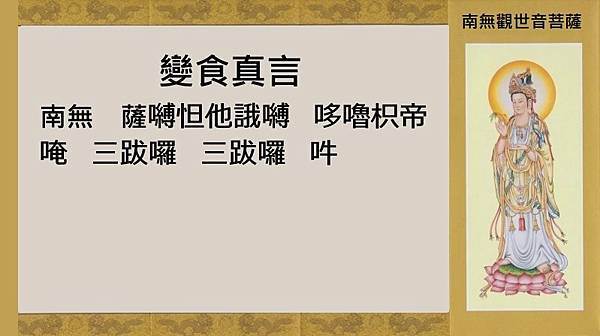 真言就是咒語的意思。一般供養的物品是人道使用的,諸佛菩薩和六道群靈用不到,所以要藉由變食真言的加持力,變成可利益六道群靈的供品。