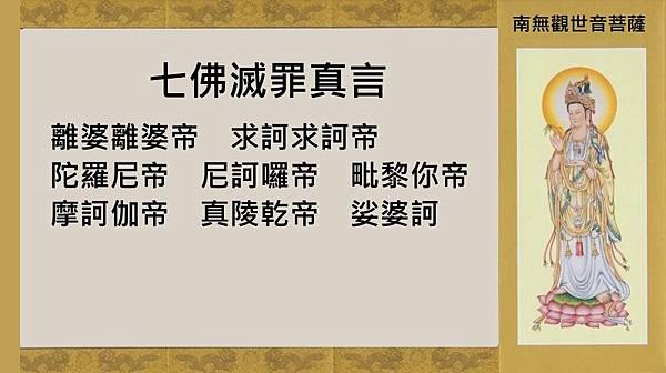 現代的眾生,多造惡業,殺生、偷盜、詐欺、邪淫、墮胎、不孝父母、誹謗三寶等惡業,皆使我們的身心不得安寧,並種下來世畜生、餓鬼、地獄之因。為了消滅此五逆四重罪業障,持誦七佛滅罪真言。