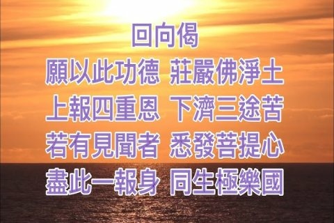 因此,學佛的人必須把一切功德都回向到往生西方淨土這個目的上去,念回向偈的時候也要和念佛一樣,一字一句從心裡經過,不能隨口念念了事。